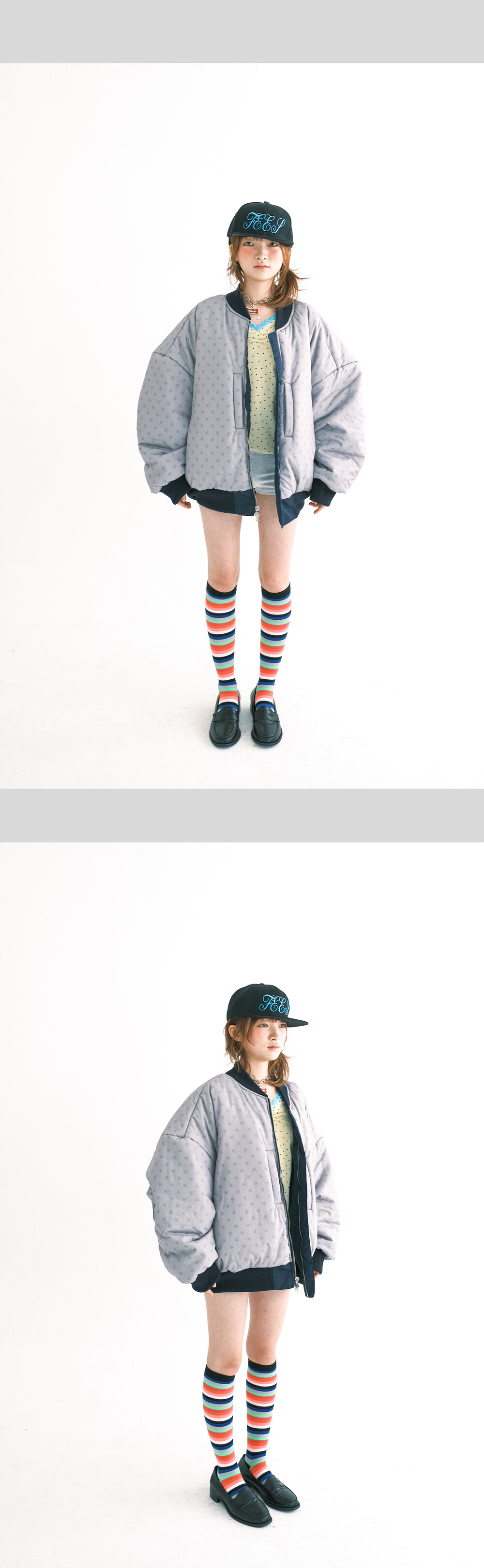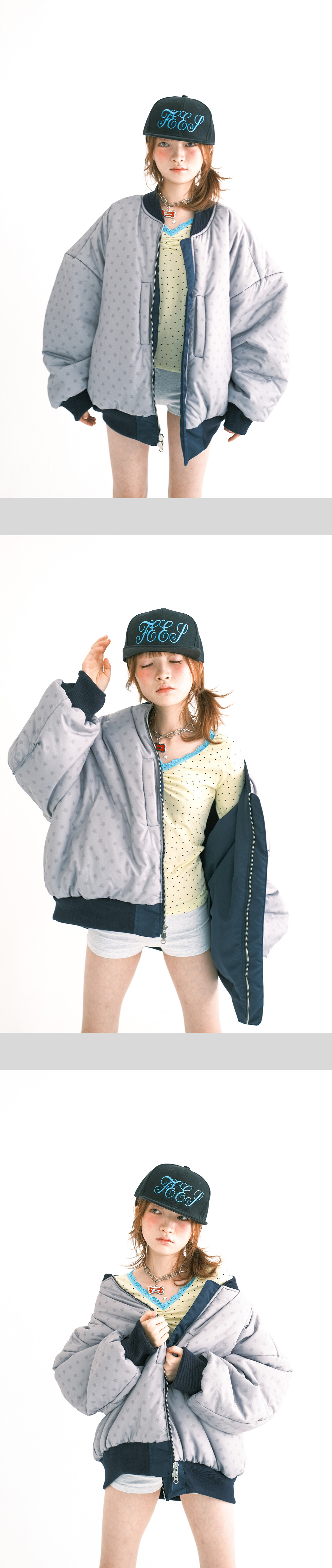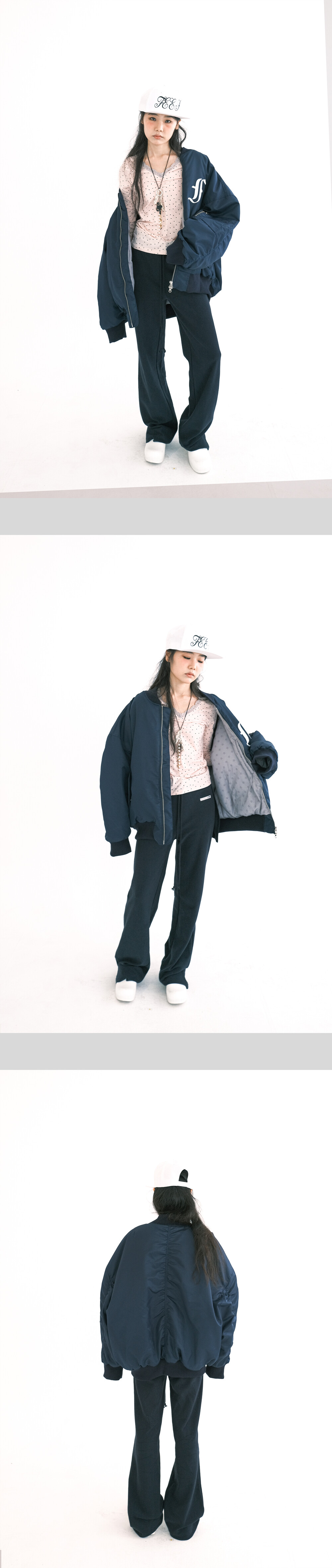 - 입체 “F” 자수가 돋보이는 패디드 봄버 자켓